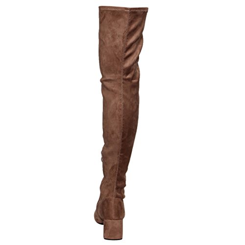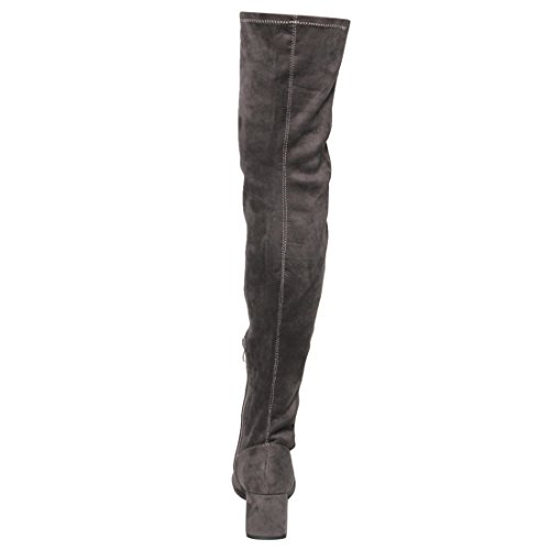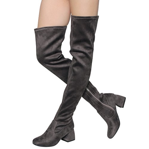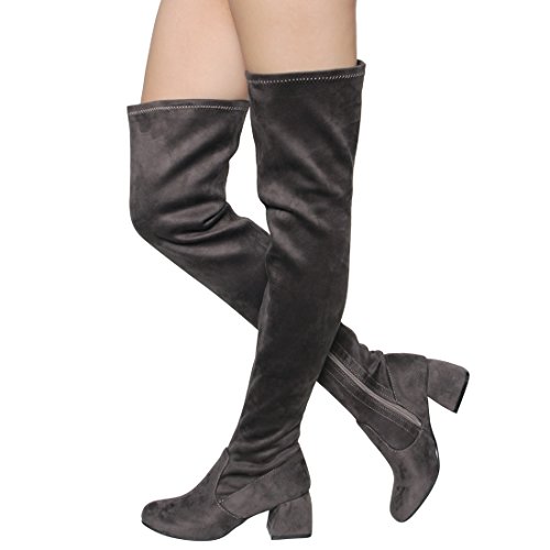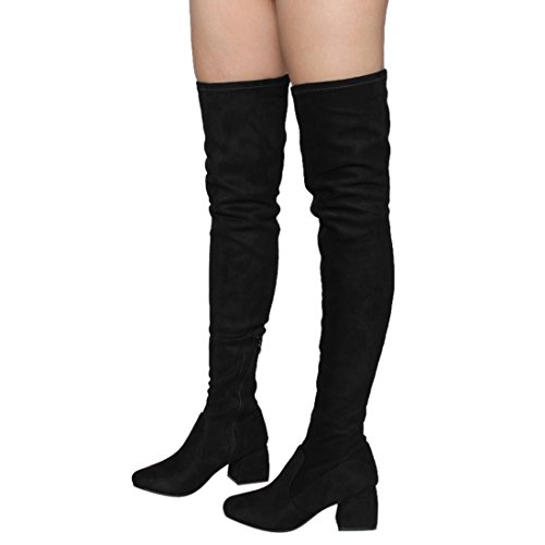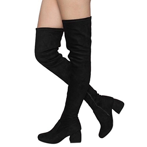 Beston FM37 Women's Stretchy Snug Fit Thigh High Side Zipper Block Heel Boots