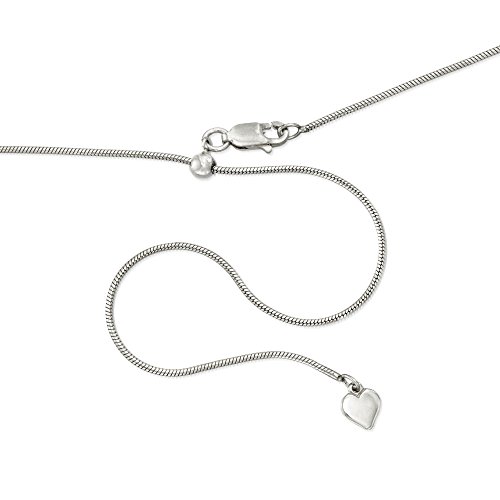 -. Feature : Sterling silver, classic snake chain necklace for women. / 1mm chain size, adjusts from 24" to choker length by sliding the adjuster on the clasp. / Lobster clasp has a spring mechanism for sturdy security. / Polished sterling silver. Crafted in Italy. / Includes jewelry presentation box and 30-day, 100% money-back guarantee.