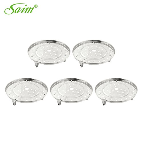 -. Title : Saim Metal Steaming Rack Tray w Stand for Cooker Silver Tone