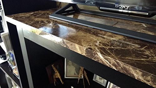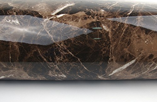 Marble Look Contact Paper Film (Brown, 24" X 118" Roll, High Glossy) Granite Effect Vinyl Self Adhesive Peel-stick Brown Counter Top (2 X 9.84 ft)