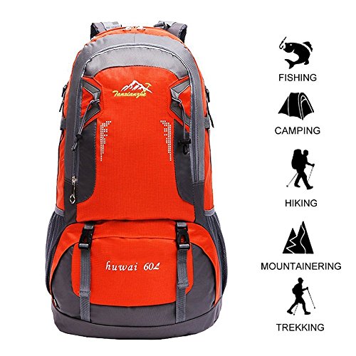 ( Extra Gift a Orange Rain Cover ) Features: Hiking backpack crafted from water resistant and tear resistant nylon fabric, very durable and practical.
