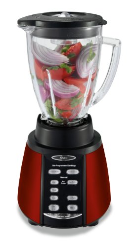 Brought to you by the #1 Blender brand. Beautiful form and incredible function. Forwards and backwards.Frozen fruit? Bring it on. Ice cubes? It's got them down. The perfect pina colada? Consider it done. It looks pretty sharp on your counter top, too. The Oster Reverse Motor Blender is a true precision machine. The powerful 600-watt, reversing motor alternates the blades forward and backward, drawing food and ice down for consistently smooth blending, which means no more trying to scrape food from the blender with a spatula. A super sharp, 6-point star blade evenly chops food and creates a shaved ice blend in a matter of seconds. The lid is clear and features a 2-ounce measuring cup. Pre-programmed settings - including time and function - provide one touch operation, so you can let the blender do the thinking. Seven speeds and high and low pulse options give you amazingly precise control at the touch of a button. And Low, Medium and High manual settings provide even more options for blending a variety of food and beverages from frozen drinks to dips, sauces to smoothies, soup to nuts. The 6-cup, dishwasher-safe, glass pitcher makes blending better and pouring easier. The glass has been Thermal Shock tested so you can pull it out of a steamy dishwasher and safely make a frosty cold beverage right away. And like most Oster Blenders, it is made in North America and backed by the superior quality of All Metal Drive. Because the two pieces that connect are metal (instead of plastic), you get a more durable and longer-lasting blender that will function flawlessly, party after party, year after year. The competition just can't compare. The Oster Reverse Motor Blender. Skilled. Versatile. Stylish. Any way you slice it.Feature