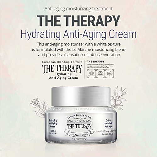 THE FACE SHOP carries nature's own values, representing natural beauty and vitality. THE THERAPY, this anti-aging treatment gets its power from a vacuum kneading method that keeps skin smooth and moisturized. This process helps the active ingredients to penetrate deep into the skin. It is ideal to treat and hydrate your normal to dry mature skin. This powerful anti-aging cream contains Marche's blended ingredients for a soft and clear complexion, thanks to oat seeds, marigold, bay leaf and olive. A trip to the fountain of youth every time.PREMIUM ANTI-AGING COSMETIC: An anti-aging cream with elastic texture full of moisture delivers instant rich dewy moisture. This is formulated with highly nourishing oats, lavender flower, wild rose, and sweet basil blended by hand with great care over a period of 6 weeks.