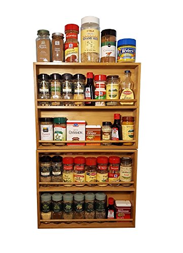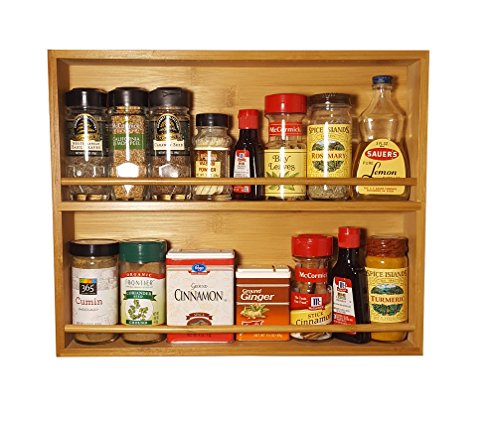 Spice Rack, Solid Bamboo Wood, 2 Tier, Stackable Wall Mount, Holds Round and Square Bottles