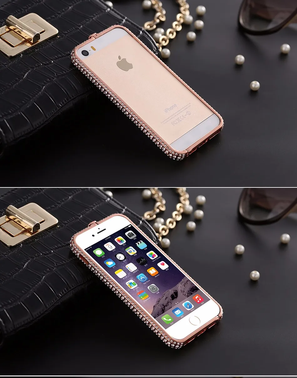 Feature :Bling Diamond + Full Crystal Rhinestone Frame Case For Iphone 5S