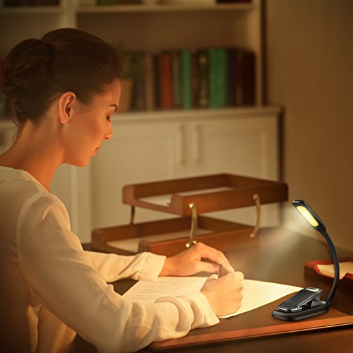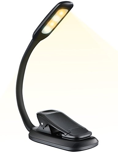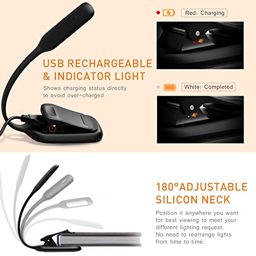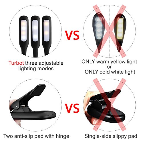 Turbot Book Lights, Rechargeable Extra-Bright 4 LED Easy Clip-on Reading Light with 3 Warm & White Night Light Modes, Flexible Neck, Best Gift for Students, Readers, Kids, Bookworms