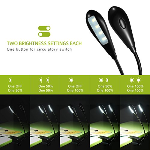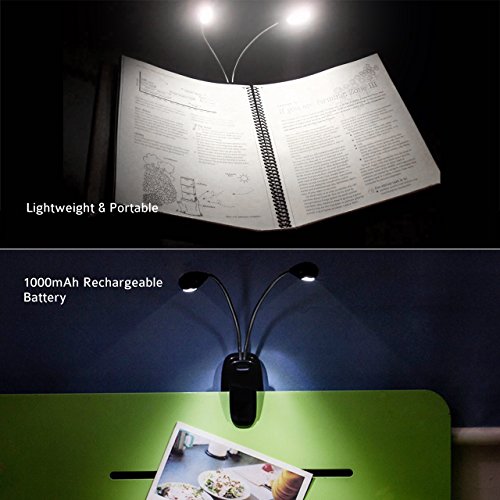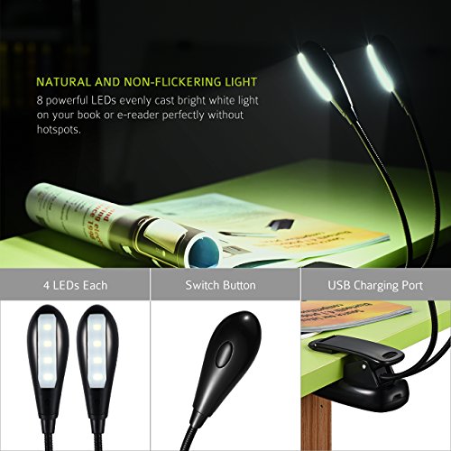 Turbot 8 LED Dual Heads Book Light with 2 Brightness Level, Rechargable Clip-On Reading Light, Flexible Eye-Friendly Desk Lamp, Portable Travel Light, for Readers, Kids, Best Gift for Book Worms