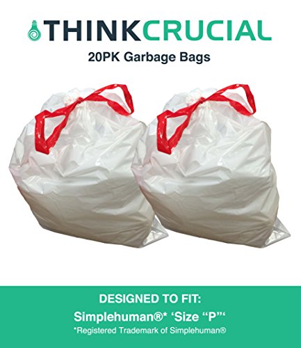 20PK Durable Garbage Bags Fit Simplehuman Size P, 60L / 13-16 Gallon, by Think Crucial