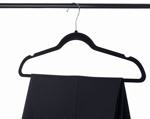 -. Feature : Pack of 20 lightweight black velvet hangers add a touch of luxury to your closet. They are designed to be thin but tough. You can finally say goodbye to your flimsy or faded hangers! / The shoulder line on the black velvet hangers is contoured to help preserve clothes shape and features precisely-cut notches for keeping straps in place. / Perfect for Space Saving--The slim and sleek design works for your closet efficiently, maximizing space and adding class, helping you organize your wardrobe in the most space efficient manner. / With quality metal 360 degree swivel hook, suede coating keeps slippery silk garments, sweaters, tops, blouses in place. / These adult hangers can keep your closet clutter free, pants tidy with locking bar, notched for ultra skinny straps, thin touch, scarf organizer, also great for suits, coats, pants, trousers and ect.