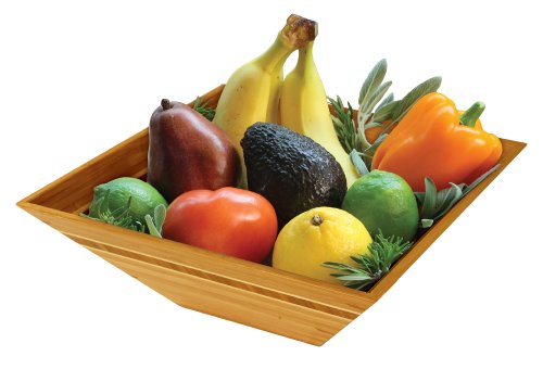 Totally Bamboo's 12-Inch Square Salad Bowl with Caribbean Inlay design is not only beautiful it's also a well-built serving piece. This spacious bowl measures 12 x 12-Inch and is 4-1/2-Inch tall. It can be used for everything from snacks to serving salad. Bowl made of Moso bamboo. Easy care; simply wash bowl by hand with warm water. Occasionally use Totally Bamboo's Revitalizing Oil to extend life and beauty of bowl. By Totally Bamboo. In 2002 Totally Bamboo company owners, Tom & Joanne Sullivan, designed and introduced the world's first bamboo cutting board. Their search for a lightweight, ecologically viable material to replace oak in the manufacturing of "Hollywood Chairs", their luxury customized director's chairs they manufacture and supply to the movie and theater industries, introduced them to bamboo. They experimented with bamboo, long known for its strength versus weight ratio and the resulting chair was much lighter and also stronger than the oak they had been using. Intrigued with using such a renewable and sustainable material, they set out to design products using their "engineered bamboo" and in doing so, developed the world's first bamboo cutting board. Bamboo, they discovered, is harder than maple, making it perfect for a cutting surface. Not only is bamboo hard and lightweight, is it one of the fastest growing, sustainable materials on the planet. Bamboo is a grass that produces more oxygen than a hardwood forest of comparable size. For their products, Totally Bamboo uses only Moso bamboo, which is harvested after the bamboo has grown for at least 5 years - this ensures the fibers are mature, which adds to its strength and density. The Moso bamboo has an extensive root system that continually sends up new shoots, naturally replenishing itself and therefore it does not require replanting, making it one of the most renewable resources known. Moso bamboo is not a food source, nor habitat, for the Giant Panda.Feature
