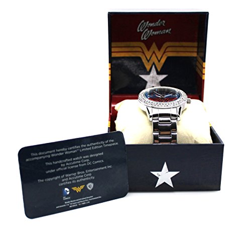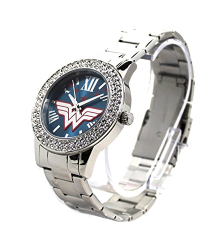 -. Feature : I am P.R.Incess Diana of Themyscira and this is my Justice Silver-toned watch. This watch embodies the strength, agility, and regal style of the Amazonian P.R.Incess. This watch was produced in a small limited edition of 500 pieces world-wide. Comes in a beautiful Wonder Woman themed box and certificate of authenticity. Each watch is etched with the limited edition number on the case-back. / "We all have a Wonder Woman inside us." -American designer Diane von Furstenberg once said. This watch is perfect for the Wonder Woman in your life. All women are Wonder Women and deserves a strong and classic watch such as this. / This watch is a young adult / adult woman's sized watch that is adorned with beautiful Czech stones around the face of the watch. The classic and clean dial features the classic Wonder Woman logo which is also featured on the crown of the watch and the buckle. / Wonder Woman themed logo and color theme. Uses a Japan watch movement. Stainless steel case and band. The watch case measures about 1.6 inches in diameter. Bracelet is 1 inch wide. Watch is shipped with a crown stopper, protective film of the glass/crystal, and a protective film/sticker on the case back. The crown stopper prolongs the battery. Watch is about 8.5 inches in diameter and links can be removed if needed. / If you are a fan of the Amazonian P.R.Incess, then this Wonder Woman Watch is the one for you. Don't miss out on this rare opportunity to own one of these limited edition watches.