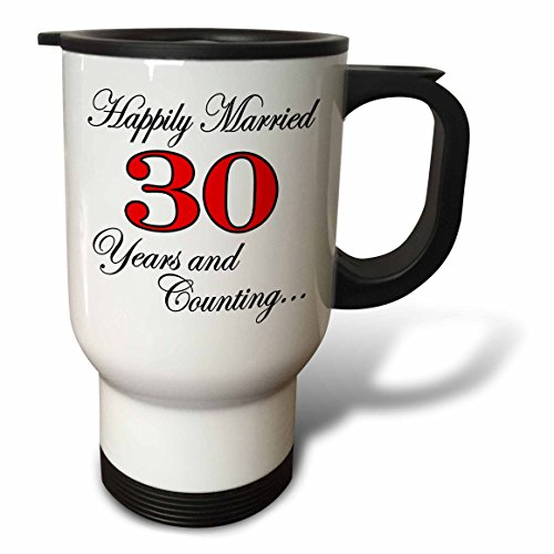3dRose tm_193406_1 Happily Married 30 Years and Counting Red, Travel Mug, 14-Ounce, Stainless Steel