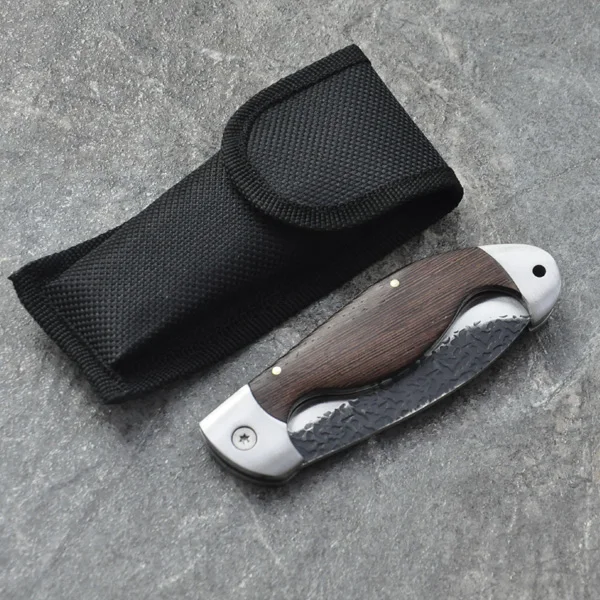 | [해외] 접는 칼 440C 스테인레스 스틸 캠핑 사냥 칼 나무 핸들 구조 전술 포켓 나이프 및 나일론 칼집 |