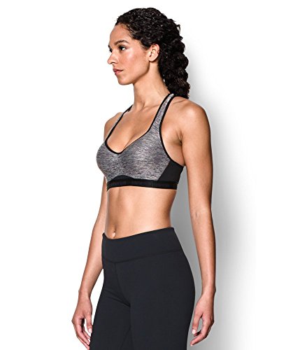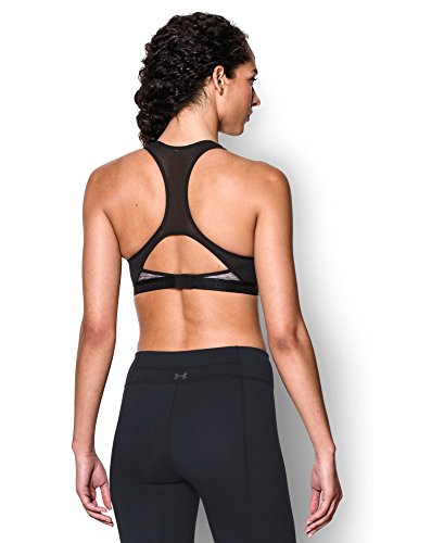 UA Compression sports bras deliver superior support & comfort during intense workouts. Super-smooth, double-layer HeatGear fabric delivers superior next-to-skin feel Signature Moisture Transport. System wicks sweat to keep you dry & light. Soft, molded cups for enhanced shape. Full textured mesh back panel. Performance gel-lined straps for optimal comfort. Plush, Branded elastic band with adjustable hook & eye back closure. Deep V plunge neckline.Feature