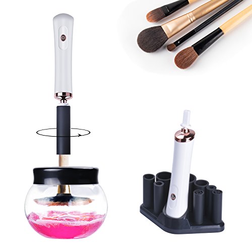-. Feature : AUTOMATIC AND DEEP CLEANING: The makeup brush cleaner can clean and dry your brush in 10-30 seconds automaticly,with 360 degree rotated,it will removes bacteria,cosmetic residue, dirt and oil,deep cleansing brushes on dirty matter keep your brush clean and sanitary,prevent skin diseases. / FIT ALL OF YOUR MAKEUP BRUSH: It has 8 different size of collars suitable for 95% make up brushes in the market.works with natural or synthetic cosmetic brushes of different size,convenient for you to use. / SAFE AND DURABLE SAVE MONEY: Advanced and environmental-friendly ABS material which is non-toxic, waterproof, odorless,abrasion resistant.The cleaning bowl is made of high grade materials to ensure long-lasting use.and it works on AAA batteries(included)very portable and convenient to carry. / EASY TO USE: Just 4 steps to get one new set make up brush:1-Put water & soap into the bowl.2-Dip & dunk the brush in soap water.3-Spin to clean.4-Spin to dry. / 100% SATISFACTION: We provide 30 day money back guarantee and 1 year warranty.If you have any problems with our cometic brush cleaner,just feel free to contact us.We will always be here to solve it until you are satisfied.