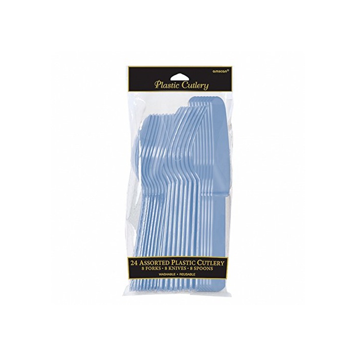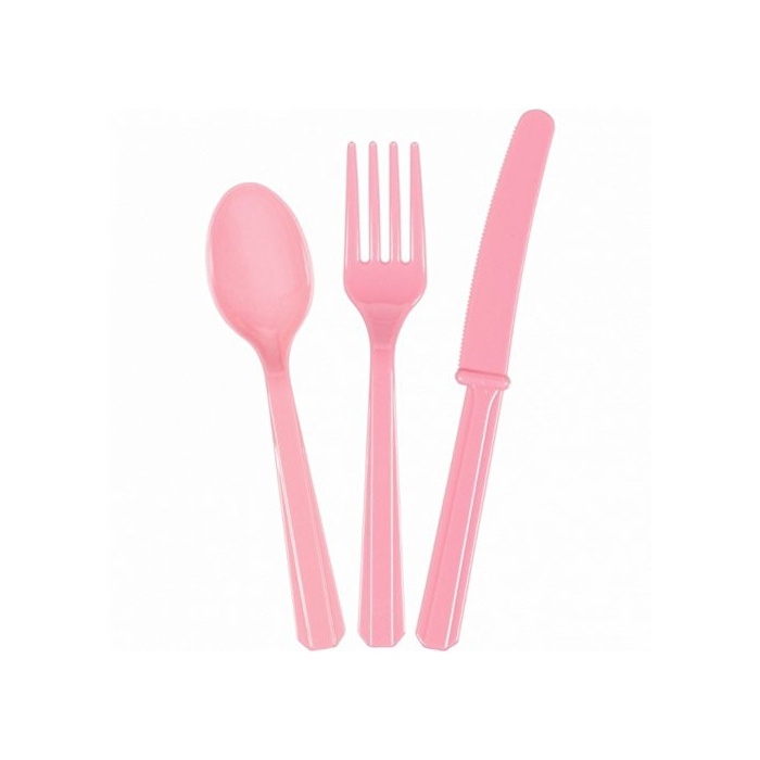 (아무스캬) Amscan 나이프 포크 스푼 플라스틱 커트러리 세트 바베큐 (원 사이즈) (뉴 베이비 핑크)