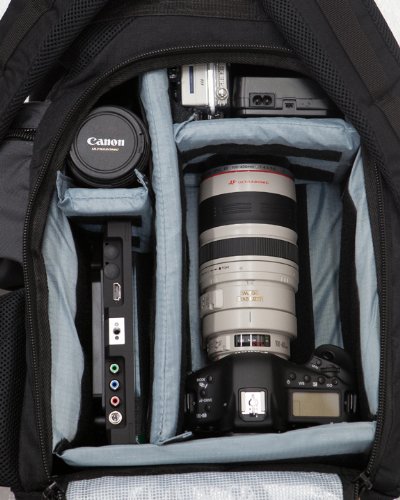 -. Binding : Electronics -. Brand : CineBags -. Color : Black/Charcoal -. EAN : 0853070002166 -. Feature : Product Dimensions - 25(H) x 13(W) x 11(D) inches / Holds your camera, laptop and accessories in one bag / Waterproof material with a pullout rain cover / Top pouch with u-shaped zipper, smaller pouches on the side, large cargo pouch for bigger accessories and fleece-lined pouch for filters or sunglasses / Padded customizable interior with removable divider / Large padded shoulder harness -. Label : CineBags -. LegalDisclaimer : Sold as is. No refunds. Item is in like new condition. -. Manufacturer : CineBags -. Model : CB25B -. MPN : CB25B -. PackageQuantity : 1 -. PartNumber : CB25B -. ProductGroup : Photography -. ProductTypeName : CAMERA_BAGS_AND_CASES -. Publisher : CineBags -. Studio : CineBags -. Title : CineBags CB-25B Revolution Backpack -. UPC : 853070002166 -. Warranty : Warranty against defects for 3 years