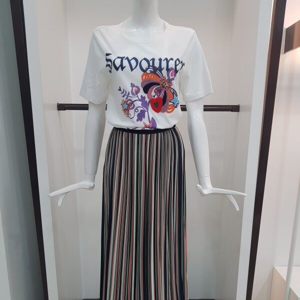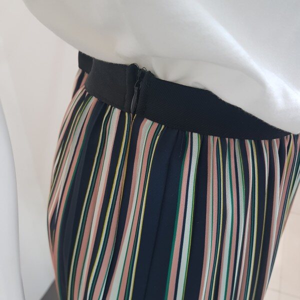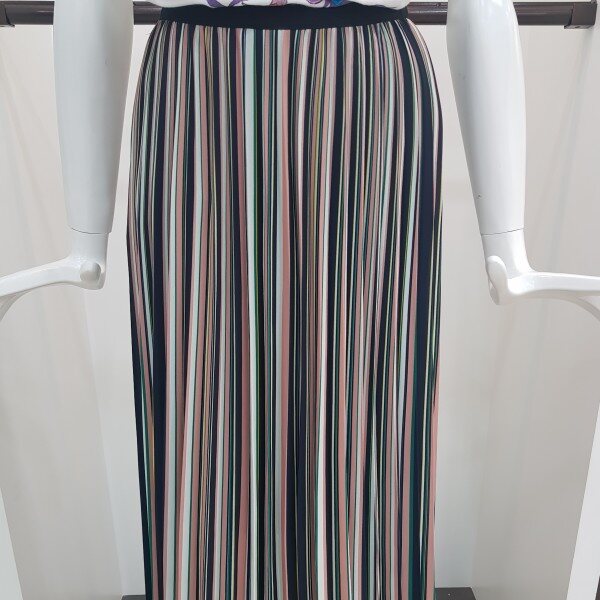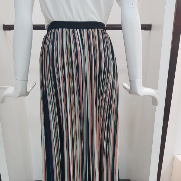 트렌디한 컬러감의 스트라이프 프린트 주름 스커트