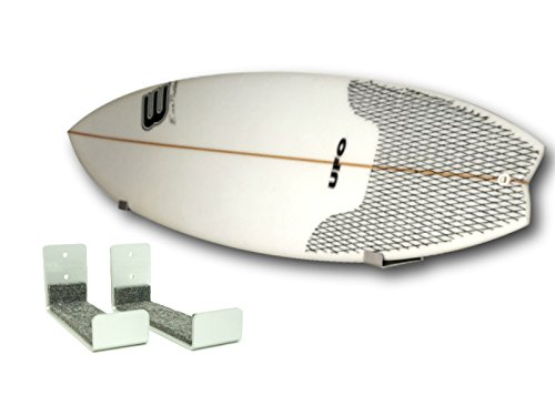 Made by the leaders in action sports storage equipment, StoreYourBoard, this Surfboard Wall Rack is a premium quality rack guaranteed to impress. With its 100% 5052 Aluminum construction, you can rest assured this rack will be sturdy enough to meet all your storage needs and will never rust! Whether you are looking for a sleek, minimalistic rack to show off your favorite board, or something more utilitarian to get your boards up off the floor, this Surfboard Display Rack has you covered. One of the best features about this surfboard storage rack is its Anodized Aluminum finish - this provides a beautiful look that won't scratch easily or leave fingerprints. The two independent arms allows you to adjust the width of mounting which means you can easily fit shortboards, fish, or longboards. With so many great features, there's no reason you shouldn't pick up a Naked Surf rack for all of your surfboards! Includes 4 mounting screws and 4 drywall anchors.