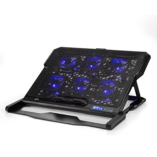 TopMate 12.6-15 inch 1500RPM Strong Wind Laptop Cooling pad, Six Quite Fans and LCD Screen Two USB Ports