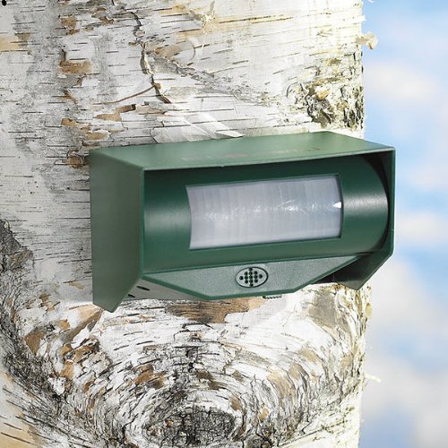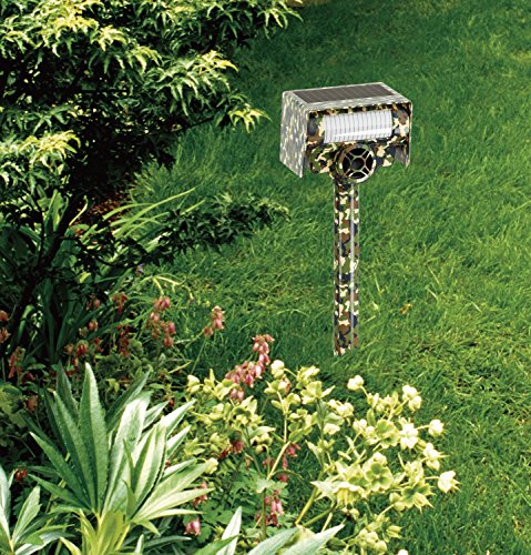 Repels raccoons, skunks, deer, squirrels, rabbits, mice, rats, stray dogs and stray cats. Durable weatherproof plastic housing. Completely wireless and solar powered. Works both day and night. Mounting bracket in back for easy mounting on wall or tree and comes with bonus garden stake so you can place just about anywhere! Perfect to keep unwanted animals out of garbage cans and to keep neighbors� dog or cat from entering your yard. Solar powered works on rechargeable batteries and also can use regular alkaline batteries as well where the sun don�t shine.Feature