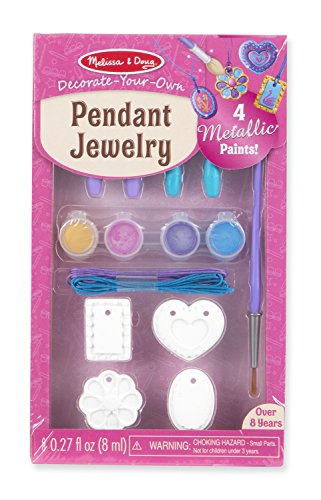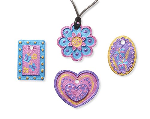 - Includes 4 double-sided resin pendants, 4 laces and clasps, 4 pots of metallic paint, and a paintbrush