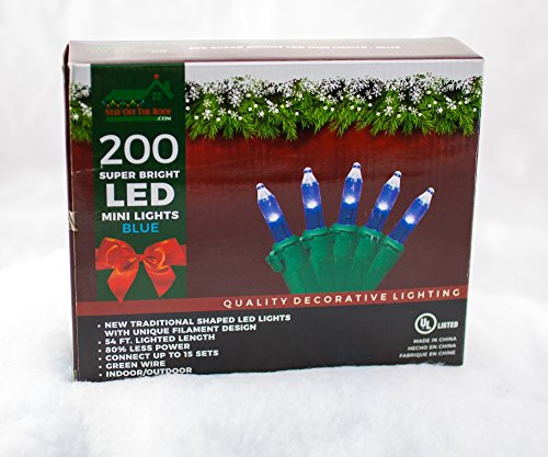 Super Bright LED Home Wedding Christmas Garden Party Decorative Lights Set - Blue - 200-Piece - 54 ft Lighted Length, Connect up to 15 Sets - Indoor / Outdoor Seasonal Mini Pack