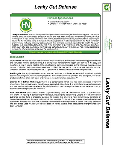- Title : Leaky Gut Defense - 168gm Powder (appox 30 servings per container) ● Contains: L-Glutamine, Arabinogalactan, Licorice Root 10:1 (deglycyrrhized) & Aloe Leaf (standardized to 50% polysaccharides) ● Pharmaceutical Grade