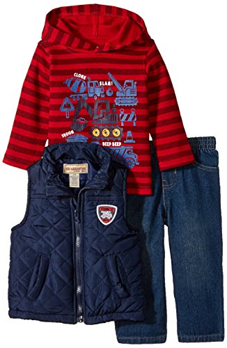 -. Title : Kids Headquarters Baby Boys' Vest with Red Stripes Hooded Tee and Jeans