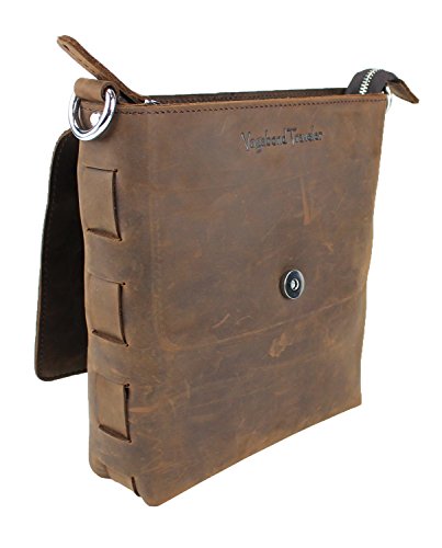 Product Description A wise man once said that a journey of a thousand miles begins with a single step. Wherever your journey takes you, travel confidently with Vagabond Traveler bags. At Vagabond Traveler, our demonstrated objective is to provide ruggedly stylish, high quality bags at affordable prices. Each bag is manufactured from the finest materials and built to last for decades. Our leather is lined by premium suede with highest grade industrial nylon and cut with precision for your VT bags. The full grain leather used to manufacturer our bags are expertly tanned, revealing its natural beauty. Potential stress locations are reinforced with durable and stylish rivets. Our indestructible nickel-plated buckles provide the finishing touch. The result is a ruggedly elegant and practical bag whose appearance improves with age! Now is a perfect time to demonstrate your independence with a VT bags and its mark of distinction. If by chance you see "cattle scars", wrinkles, even cow smell on your bags, those are not imperfections (raw, unfinished/un-sanded leather). They are in fact unique scars from cattle branding, barbed wire or "skirmishes" with other cows, etc. In leather circles, they are often considered desirable, as they set your bag apart from ALL others. OIL Tanned Cowhide Leather Ages Beautify, Soft, Dark and Comfortable. The OLD, THE MORE VALUE. 0