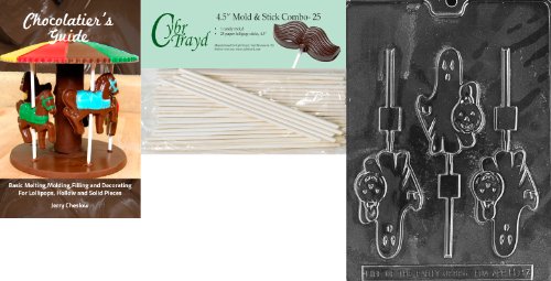 Cybrtrayd 'Ghost Holding Pumpkin Lolly' Halloween Chocolate Candy Mold with 25 4.5-Inch Lollipop Sticks and Chocolatier's Guide