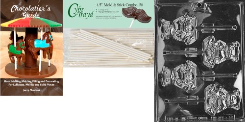Cybrtrayd 'Honey Bear Lolly' Animal Chocolate Candy Mold with 50 4.5-Inch Lollipop Sticks and Chocolatier's Guide