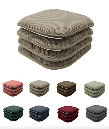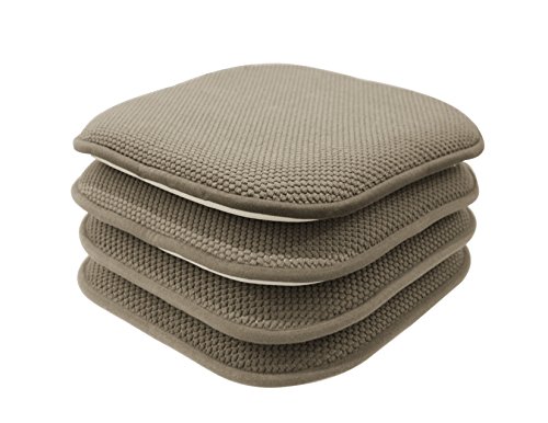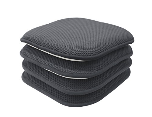 -. Feature : What's Included: (4) Non Slip Memory Foam Chair Pads / Chair Pad/Cushion Dimensions: 16 in. x 16 in. (41 cm. x 41 cm.) Each, 4 Included / Fabrication: 100% Polyester / Care Instructions: Wipe With Damp Cloth/Hand Vacuum / Features: Soft polyester top ~ Nonskid backing ~ Encourages good posture ~ Supplies adE.q.u.a.t.e back support