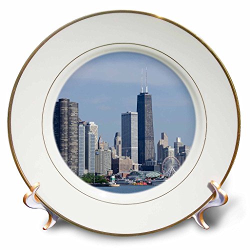 3dRose Illinois, Chicago, Lake Michigan view the Chicago city skyline, - Porcelain Plate, 8-inch (cp_208022_1)