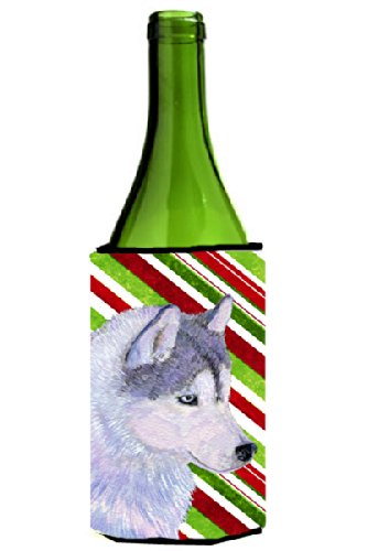 Siberian Husky Candy Cane Holiday Christmas Wine Bottle Beverage Insulator Beverage Insulator Hugger