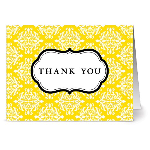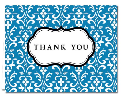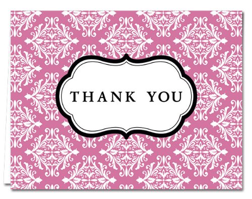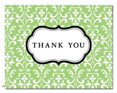 -. Feature : Thank You Note Cards - Damask Style / $7.49 for 24 Cards - Choose your color - Light gray envelopes included / Glossy finish on the outside of the note card / Note cards are blank on the inside / Note card size: 4.25" x 5.5" - Heavy 15 pt. card stock - Made in the USA