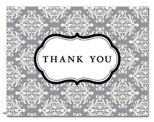 -. Title : 24 Note Cards - Thank You Note Cards - Damask - Multiple Color Options and Includes Light Gray Envelopes