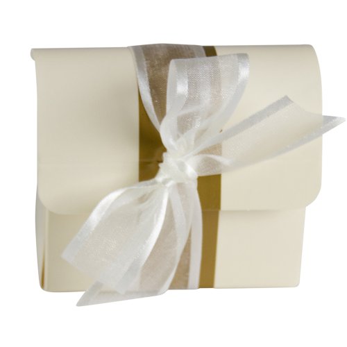 - Gold and Ivory trunk shaped favor holders; ribbons sold separately