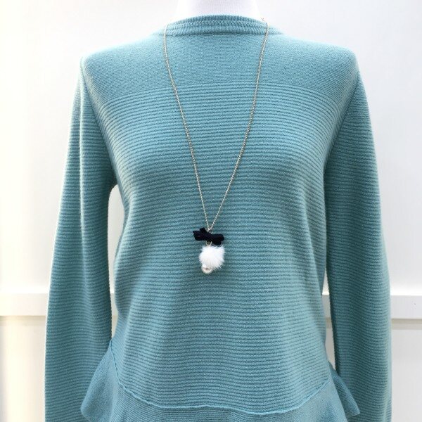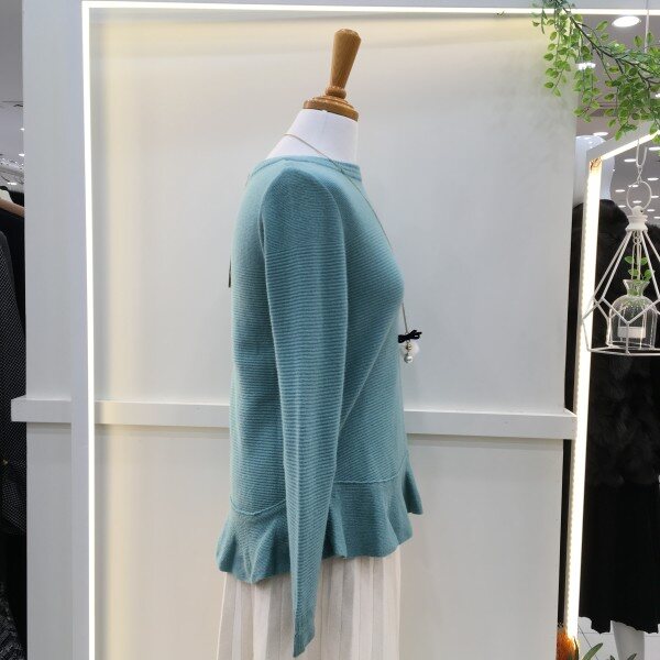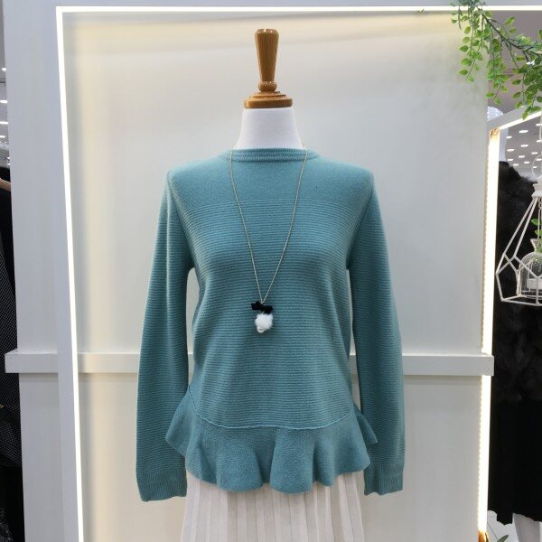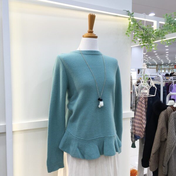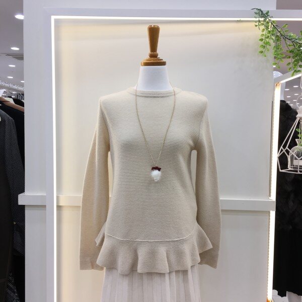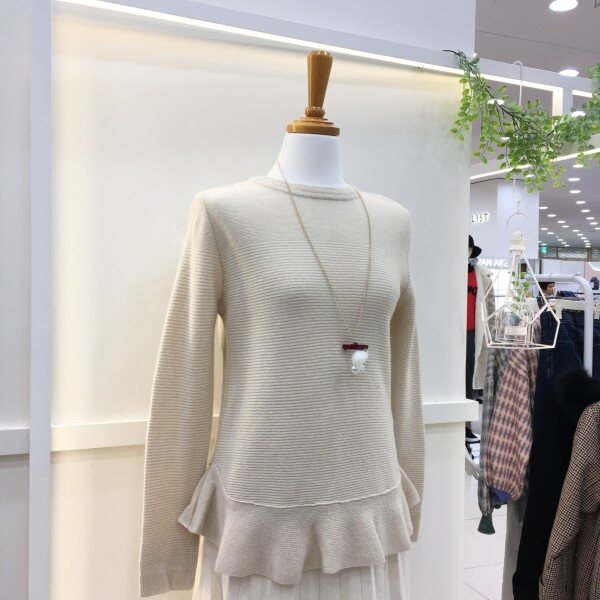 <케어라벨에 표기된 사이즈와 실제사이즈는 다를 수 있습니다>밑단의 프릴장식이 사랑스러운 티셔츠입니다. 전체적으로 심플하고 깔끔한 디자인에 목걸이 악세서리 추가로 밋밋하지 않은 아이템입니다.