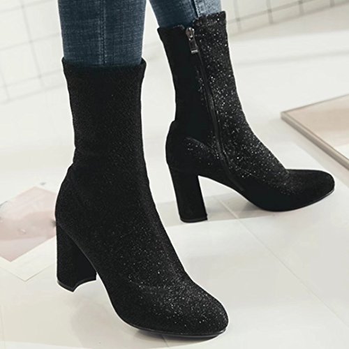 * Heel Height:9cm * Shaft: 20cm * Boots opening: 25cm * Platform Height:0.5cm * Material: Glitter * Inner Material: Suede * Sole Material:Rubber * Color: Black, Winered, Gray, Silver * Toe Type: Round Toe * Closure Type: Zipper * Heel Type: Block Heel * The package will be delivered to you about 7-12 business days. * Please measure the sizes of your feet before you buy this item. If your foot is slightly wider or one of your toes is longer than usual, please choose the larger size. * Q1: What can I do if I have any problems? * A1: Please send email to tell us your problems first,we will reply you in 12 hours(except holiday) and try to find the best solutions,thanks for your trust! * Q2: What can I do if the products have problems? * A2: Please send us email with the problem products picture,which can help us to solve the problem in time! * AIYOUMEI commits to the shoes' design, craftsmanship have a unique study to the Excellent quality of products and timely courtesy of customer service experience, adhering to the customer is God's philosophy.Our product main conclud boots, military style, espadrilles, flat, lace-ups, loafers panties, High heels, plateau, casuals, dress shoes, oxfords and so on.If there are any problems, please feel free to contact us at any time, we are always here to help you. 0 |