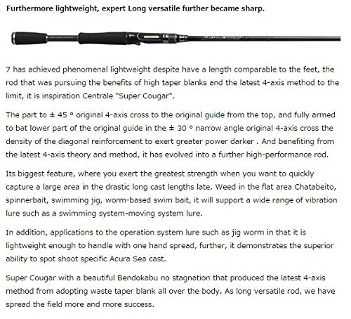 또한한쪽 손으로 다룰 수 있을 정도로(수록) 경량화 된 것으로 지그 웜 등의 조작계 루어에까지 용도는 퍼지고, 게다가스포트 shoot 적인 아큐라 C 캐스트에게도 우수한 능력을 발휘합니다.최신4축 공법을 전신에 뚜렷하게 채용한 하이 테이퍼 blank부터 만들어 내어지는 웅덩이가 없어 아름다운《벤도카부》을 가지는 슈퍼 쿠우(Qoo)《가》.