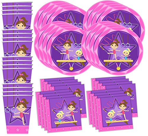 -. Title : Gymnastics Star Birthday Party Supplies Set Plates Napkins Cups Tableware Kit for 16 by Birthday Galore