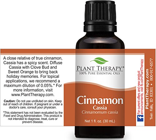 -. Feature : Botanical Name: Cinnamomun cassia blume / Aromatic Scent: Cinnamon Bark Oil has a warm, spicy scent that is somewhere between clove and cinnamon. It is slightly herbaceous with pepper notes. / 100% Certified Pure Therapeutic Grade Essential Oil- no fillers, additives, bases or carriers added. / Packaged in dark amber glass bottle with euro style dropper cap. / For your convenience all Plant Therapy Essential Oils have an oil identification sticker on the cap. This is especially beneficial if you use a top load carrying case.