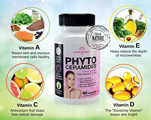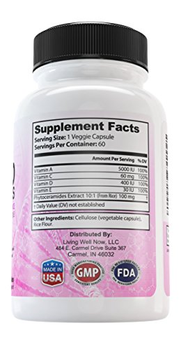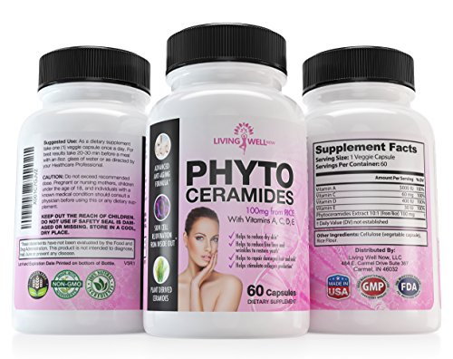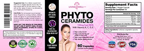 -. Feature : Living Well Now is the best Phytoceramides and contains Absolutely NO Magnesium Stearate, Stearic Acid, and Silicon Dioxide like other brands. NO side effects. ZERO Additives, Artificial Ingredients, Binders, Fillers, and Preservatives. We pride ourselves on providing high quality products. Our phytoceramides are all-natural, gluten-free, non-GMO, vegan and plant derived from RICE (100Mg) / Our Phytoceramide capsules are plant-derived from Rice and have been developed so that they can be taken orally, ensuring that these potent molecules are absorbed into the bloodstream. Once absorbed, they are carried to the cells of the inner layer of the skin and subsequently seep to the outermost layer. These rejuvenating molecules reach skin all over the body. Oral phytoceramides effectively work from the inside out to hydrate, smooth, and rejuvenate aging and wrinkled skin / Why Rice is better than Wheat Phytoceramides: High 350mg from wheat/potato are still under par for quality compared to lower 40mg from rice (Ours have 100mg). Rice Phytoceramides are totally devoid of gluten. Which makes them even suitable to individuals whose bodies' develop allergies from contact with this substance / Our Phytoceramides are Made in USA to FDA Specified cGMP Standards using only Top-Quality Ingredients / Phytoceramides are the best organic skin care products for women and men to reduce the aging process from the inside out
