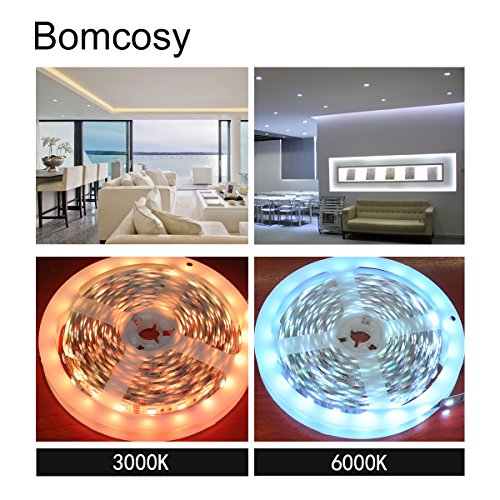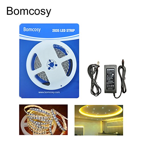 Bomcosy SMD2835 Non-waterproof IP20 Led Strip,600LEDs flexible LED lighting strip,Warm White 3000K LED Tape,16.4Ft(5 Meter),Not Dimmable,LED Light Strip+DC12V/5A Power Supply,High Brightness
