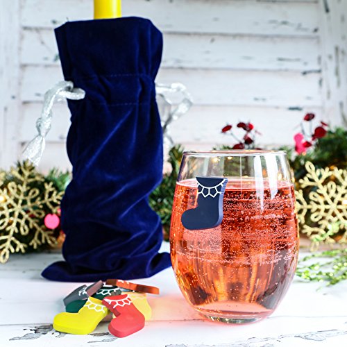 -. Title : Magnetic Wine Glass Charms Christmas Stockings Holiday Cocktail Markers for Stemless Wine Glasses - Set of 8 - including Wine Gift Bag - Perfect Hostess Gift Set or Stocking Stuffer