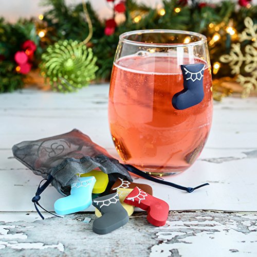 -. Feature : WON'T FALL OFF - There is nothing worse than a wine glass charm that falls off when your glass gets wet, cold or hot. Magnificent Rose Christmas Stocking wine glass markers use magnets to hold them in place through even the longest holiday parties. / EASILY VISIBLE - When you put these wine glass charms on your glass, you can see it from across the room. It is easy to distinguish which one is yours with our bold solid color design. Drink with confidence, knowing it is your cocktail and not someone else's. / CONVENIENT PACKAGING - All 8 wine glass markers in the set fit into a handy drawstring bag. They are convenient to bring with you to Christmas parties and easy to store when the holidays are over, until next year. / GREAT GIFT - The set of 8 wine glass charms includes a wine gift bag. Together they are the perfect hostess gift for any Christmas party. Keep a couple on hand for those last minute holiday invitations, or add this wine charm set by Magnificent Rose to a gift basket for your favorite wine lover. / DURABLE - The magnets will not fall off these Christmas Stocking wine glass charms because they are baked right in. They are made of silicone that will not break or rip. Simply wipe clean and store in the handy organza drawstring bag.