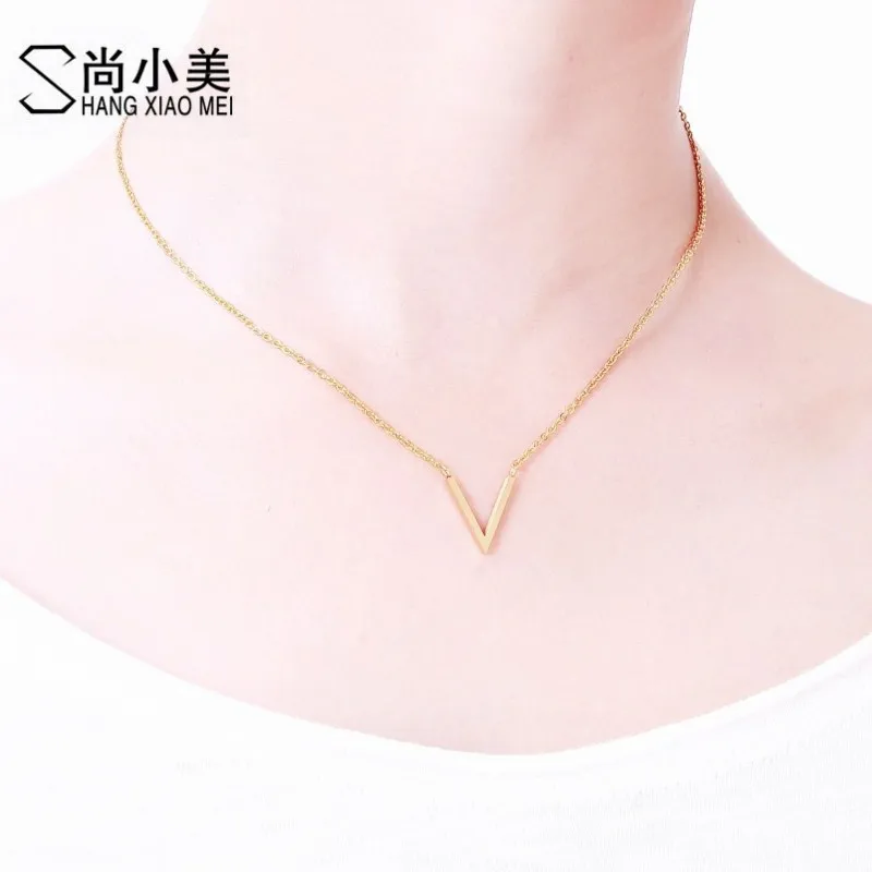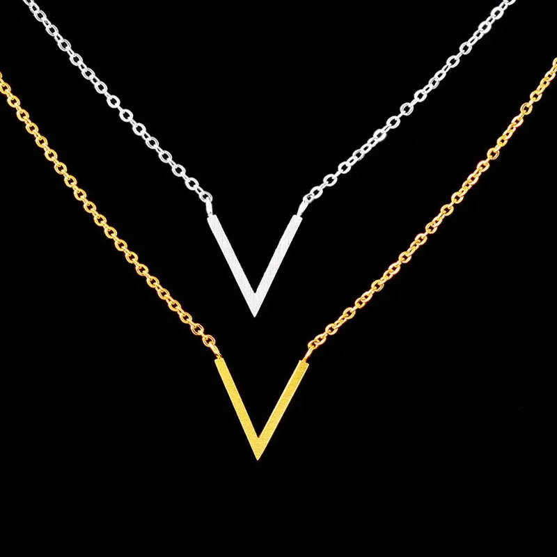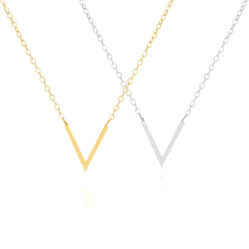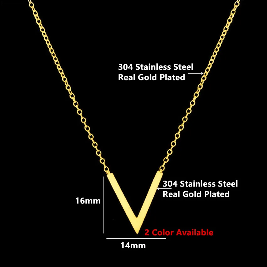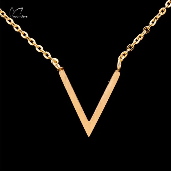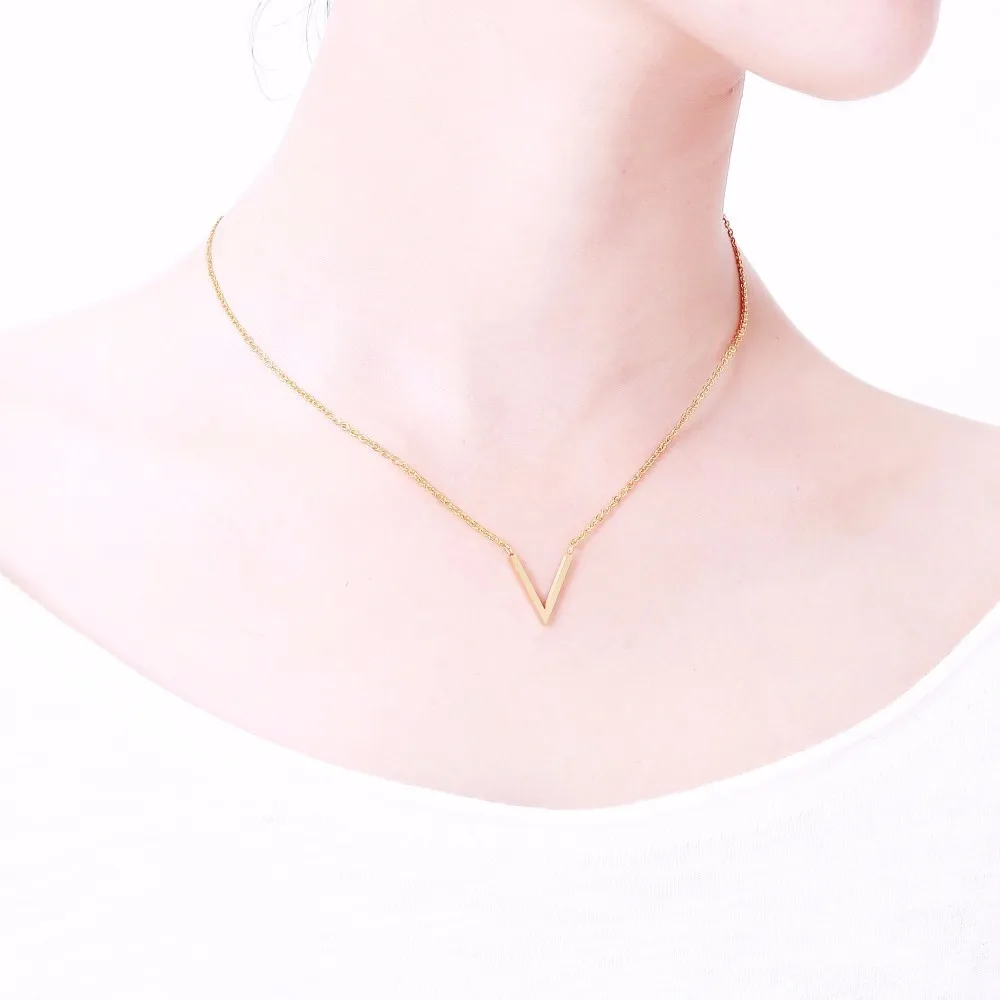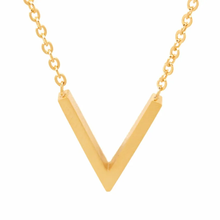 Name:Minimal Stainless Steel Chevron Initial V Necklace Women Sexy Gold Col