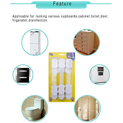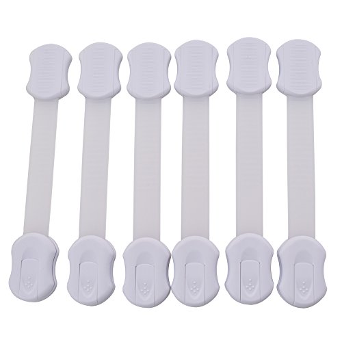 Baby Safety Locks ,Child Proof Cabinets, Drawers, Appliances, Toilet Seat, Fridge and Oven Locks with 3M Adhesive tape with Adjustable Strap and Latch System (6-Pack White)