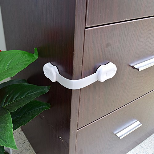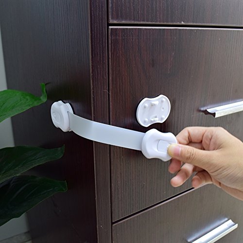 - •Baby and Child safety locks are ideal for securing entertainment centers, refrigerators, cabinets, microwaves, freezers, windows, dryers and more. Flexible strap works on both flat surfaces and around corners. It is easy to remove and won't leave marks on your cabinets or other surfaces.